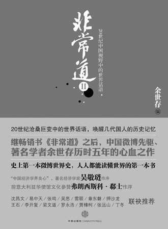 余世存在对世界历史话语碎片的有意识打捞与聚合中,彰显中国与世界的对话,展示现代文明的内质与魅力。无论是80年代的鸿篇巨制还是今天的微博话语,一代代知识分子,都在努力拉近与世界文明的距离,争取获得“世界之中国”应有的广阔视野,建立我们正当有效的世界关怀。在现代化和全球化的过程中,科学、民主、平等、自由、市场、正义、自治、宪政、法治等等对中国发生过重大影响的现代文化核心价值,历经百余年的观念变革与实践,至今仍是为国人有所欠缺或需重新认识的主题词。从这个意义上说,寻求最低限度的伦理共识、文明共识,重建公共知识,仍是一代代国民的必修功课。从这个意义上说,我们在闲翻《非常道Ⅱ》时,面对看似随意收罗的话语碎片,未免为编者的良苦用心而浩叹。非常道中,有大道存焉。