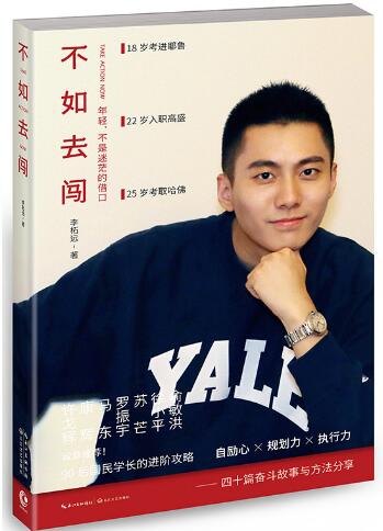 一个尚且年少的“90后”为何会为自己的第一本书起《不如去闯》这样略显老成的名字?从李柘远的书中可知,这个“90后”的人生履历丰富到很多“70后”都不能企及:2013年,李柘远从耶鲁毕业后,入职顶级投资银行高盛公司,任投行部分析师。2016年3月底,李柘远被哈佛商学院录取并获得奖学金,是本届中国大陆新生中年龄最小的一个。他为事业骨折“毁容”,做过现代“知青”到猪场数猪,参加过总融资额超250亿元的IPO项目,近百万年薪时急流勇退,勇闯创业关……没有背景、没有财力、成长在二线城市,李柘远却靠着自己对于成功的渴求,凭借着他的自励心、行动力、规划力以及强大的意志力,虔诚地做着一名“成功使徒”。